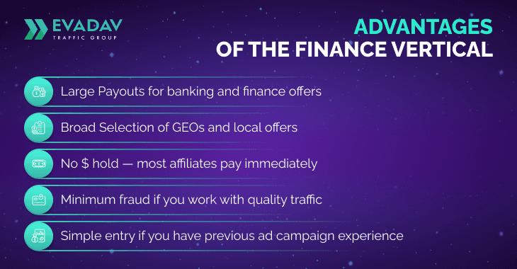 The Finance vertical has several advantages, including high payouts, a wide selection of regions for promotion, and ease of entry.
