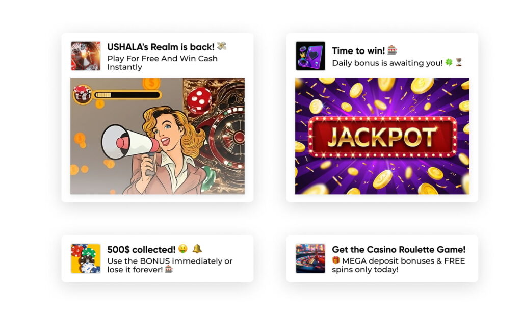 Push notifications - direct contact with users who opted in to receive these messages. Great for retargeting, reactivation, and time-sensitive offers.
