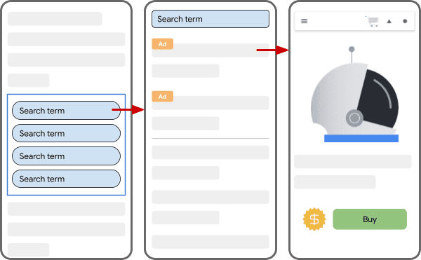 Here’s an RSOC funnel illustrated by Google. For more details, you can read their guide on related search content.